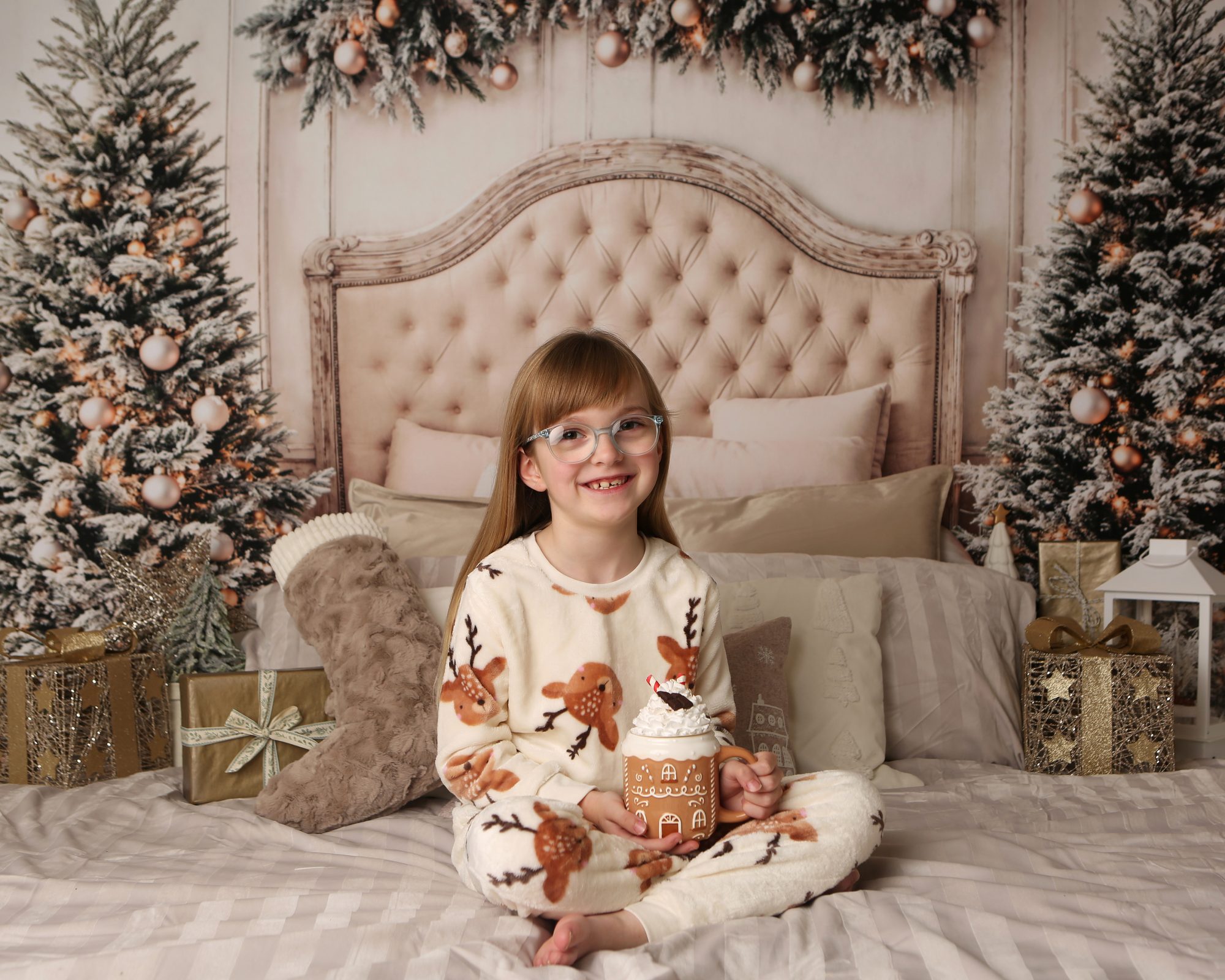 First up, we have a gorgeous bed set up with lots of lovely neutral colours. Put on your favourite Christmas pyjamas and you’re all set!